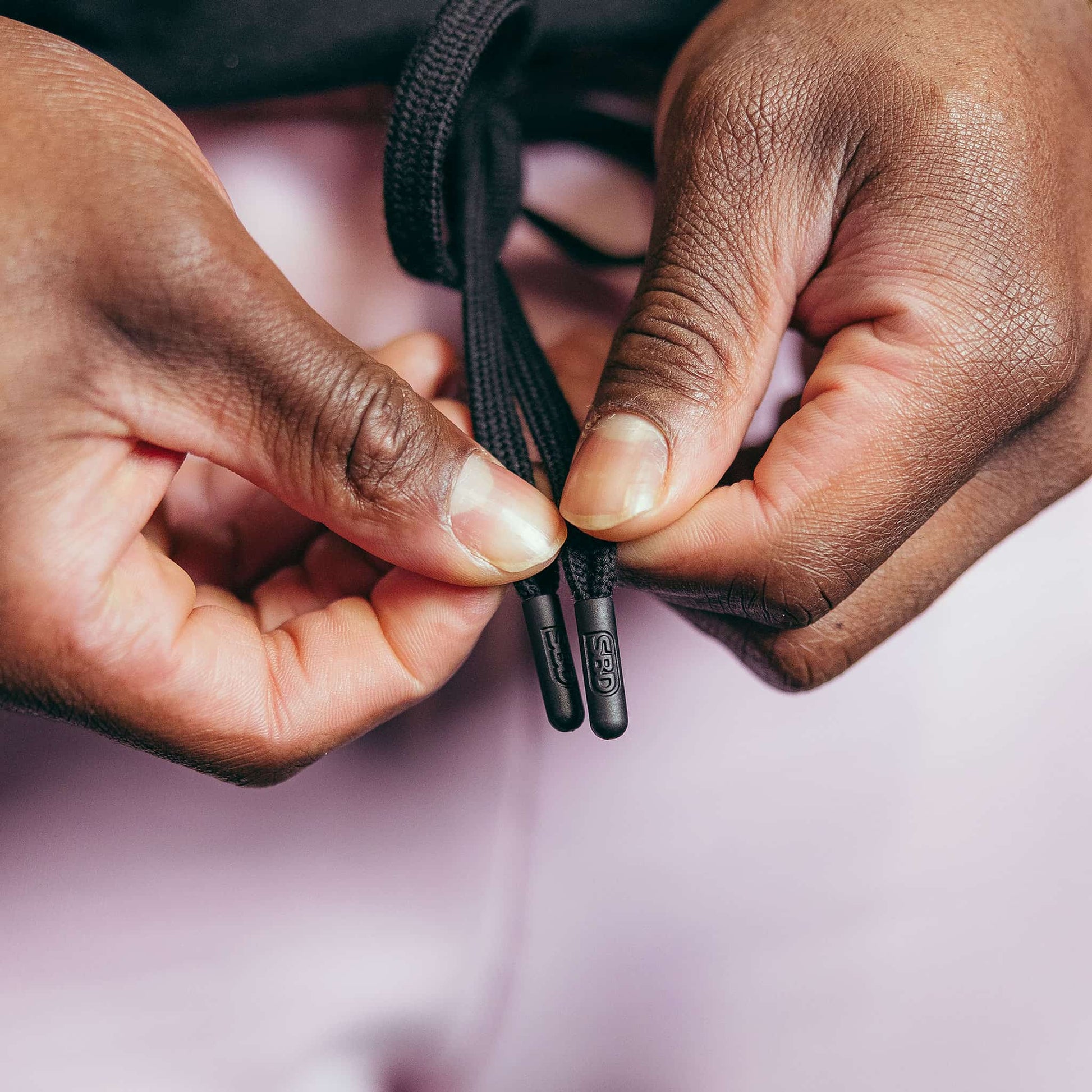 - Logotipo bordado y extremos de cordón con la marca.